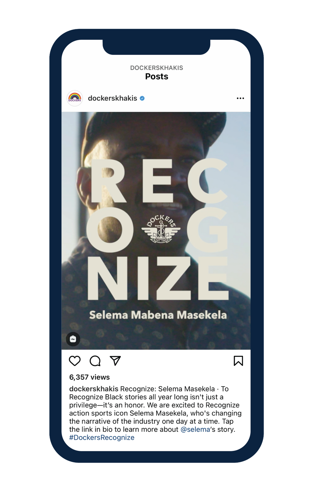 In 2021, Dockers launched Recognize, a brand storytelling series dedicated to amplifying Black voices and investing in organizations bringing opportunities to Black communities. What started as a Black History Month campaign quickly became a years-long commitment to spotlighting Black voices on Dockers’ channels.